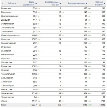 09:35 В Украине 422 человека заболели COVID-19 за минувшие сутки, 17 новых жертв вируса, выздоровели 427, активных больных 12 248.