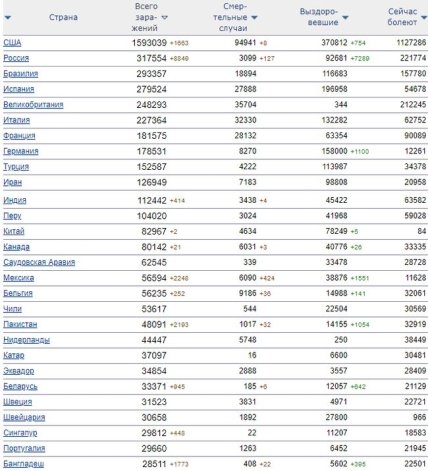 Заражение коронавирусом по разным странам на 2й.05.2020