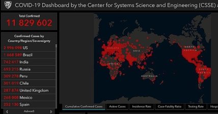 В мире от коронавирусной болезни COVID-19 умерли 543 535 человек, выздоровели 6 416 665 человек. В целом подтверждено 11 798 678 случаев заболевания.
