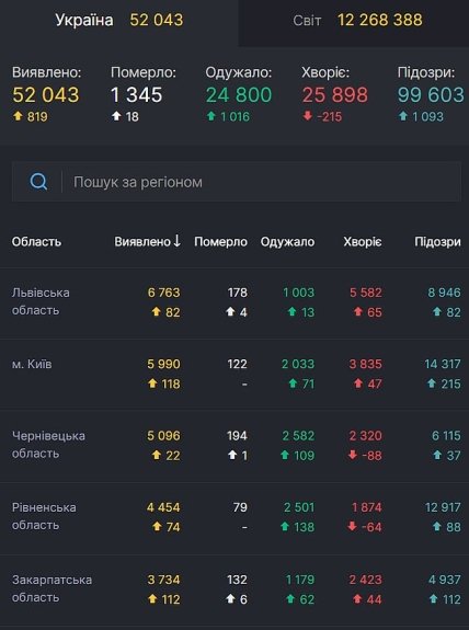 Всего с начала эпидемии в Украине коронавирусом заразились 52 043 человек, умерли 1345. Уже преодолели болезнь 24 800 человек. На сегодняшний день 25 898 активных случаев COVID-19.