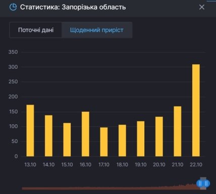 Резко увеличилось количество заболевших в Запорожской области: если на 22 октября это 309 случаев, то до этого неделю было 100-160 ежедневно.