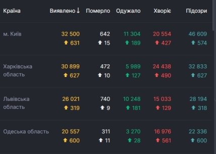 Максимальное число заражений медики зафиксировали в Киеве - 631 новый случай, 15 смертей и рекордный прирост болеющих.