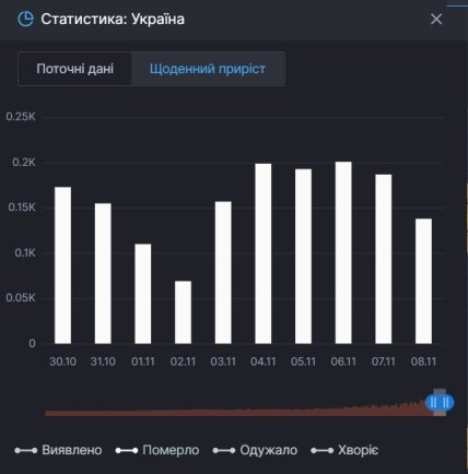 Максимальное число смертей на этой неделе было днем ранее, в пятницу. 6 ноября коронавирус забрал жизни 201 украинца.