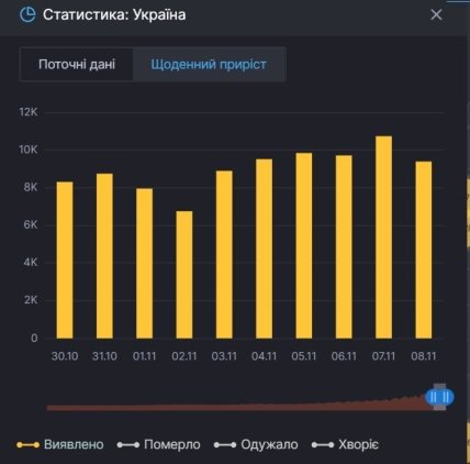 На этой неделе максимальный прирост COVID-19 в Украине был зафиксирован 7 ноября.
