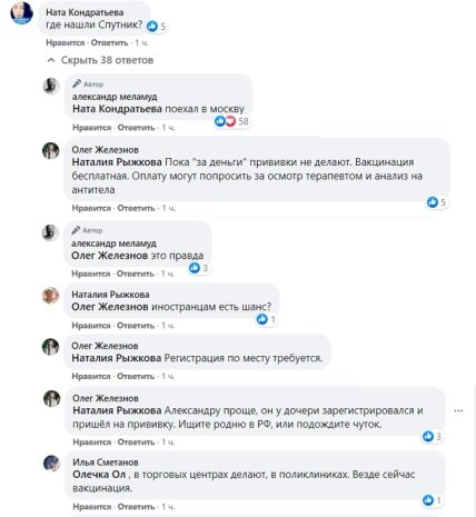 В комментариях Меламуд рассказал, что прошел вакцинацию в Москве.