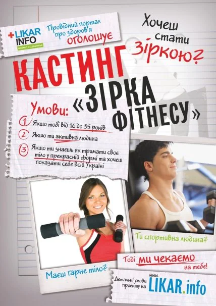 Портал о медицине и здоровом образе жизни Likar.info объявляет о начале всеукраинского кастинга "Звезда фитнеса"!