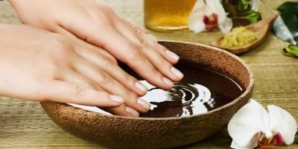 Апельсиново-йодная укрепляющая ванночка. Ее готовят практически так же, как предыдущую, только количество теплой воды нужно уменьшить вдвое и вместо полного стакана отмерить всего половину. Доливают раствор апельсиновым соком, которого потребуется тоже полстакна. Рекомендуется брать не готовый сок, купленный в магазине, а отжатый из натуральных цитрусовых. Руки в этой ванночке держат примерно 15 минут, затем подсушивают их салфеткой или полотенцем и смазывают питательным кремом.