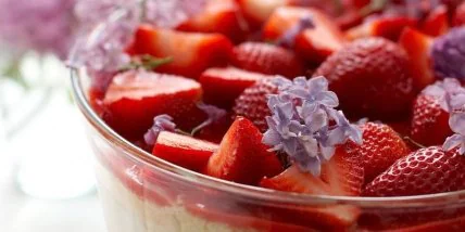 — смешать половинку стакана ягод клубники (только свежей), йогурта и одной ложкой (столовой) меда.