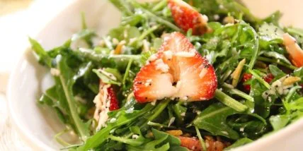 Что касается ужина, то в клубничной диете он состоит из салатов ее основе. Это может быть салат из клубники орехов и шпината, либо салат из рукколы, помидоров и клубники. Также идеальным для ужина станет салат из рукколы, клубники и сыра. Следите за тем, чтобы сыр в составе был не жирным.