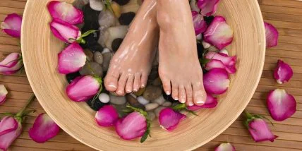 Ванночка из различных лекарственных трав. Отвары листьев шалфея, кожуры граната, плодов шиповника, полевого хвоща идеально подходят для уменьшения потливости ног.
