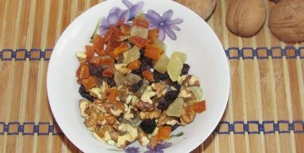 Итак, для его приготовления вам понадобятся 5 ст. ложек овсяных хлопьев, которые необходимо с вечера залить 5 ст. ложками холодной воды. Это можно сделать и утром, залив хлопья на 15-20 минут до еды. Добавляем в хлопья 1 ст. ложку молока или 1 ч. ложку сливок, 1 ч. ложку меда, 5 дробленных грецких орехов или фундука и немного сухофруктов и хорошо все перемешиваем.