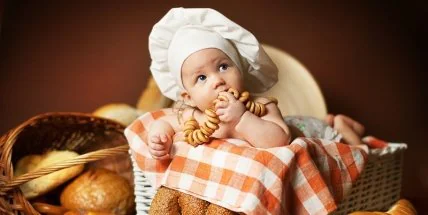 В мучных изделиях не должно быть орешков, семян или варенья, и, конечно же, печенье и баранки должны быть без красителей и консервантов. Важно также, чтобы ребенок хорошо пережевывал эти продукты, так как есть риск, что он может подавиться маленькими кусочками.