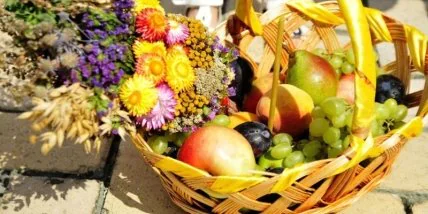 В день Яблочного Спаса пекут яблоки, блины, пироги не только с яблоками, но и с грибами и ягодами, всем, чем одаривает сад, огород, лес. Этот день — первая встреча осени (осенины). Вместе с яблоками продолжают освящать мед, вишню, сливы, другие фрукты и даже овощи.