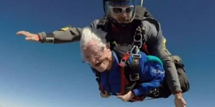 95-летняя старушка прыгнула с парашютом с высоты 4 км (Видео)