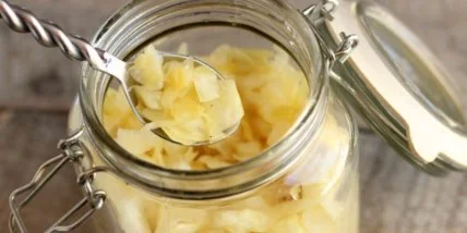 Добавьте к нарезанной капусте соль, а затем накройте. В процессе брожения, бактерии, присутствующие на поверхности листьев капусты, преобразуют натуральные сахара овощей в молочную кислоту. В дополнение к полезным бактериям, квашеная капуста является отличным источником витамина С. Аналогичным ферментированным продуктом питания является кимчи.