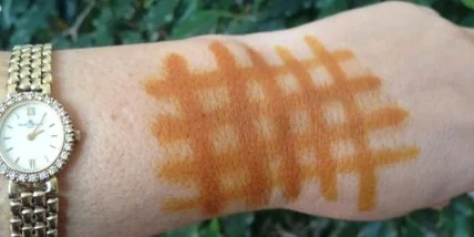 Обязательно надо проверить, нет ли у того, кому рисуется йодная сетка, аллергии на йод. Для этого проводят палочкой с йодом по внутренней стороне предплечья и выжидают полчаса. Аллергия может проявиться в виде красноты, высыпаний, раздражения, волдыри. Если их нет, то йодную сетку можно делать.
