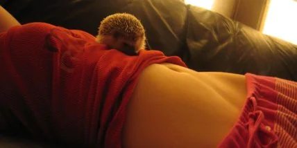 Поглаживания. Положите руку на живот, и поглаживайте его неторопливыми круговыми движениями. Сначала рука должна описывать небольшой круг, постепенно его диаметр должен становиться все больше; затем начните уменьшать круги. Выполняйте такие поглаживания в течение 3-5 минут, обеими руками по очереди.
