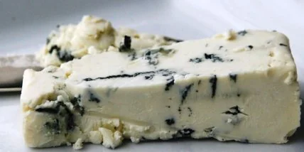 Следующий вид – голубые плесневые сыры, а точнее, сыры с голубой плесенью – тоже "благородной". На срезе такого сыра мы видим множество зеленовато-голубых вкраплений, а самые известные сорта – Рокфор, Фурм д’Амбер, Горгонзола, Бле де Косс. Створоженное молоко выкладывается в специальную форму; когда сыворотка стечет, сыр натирают солью, и вводят определенный штамм грибка.