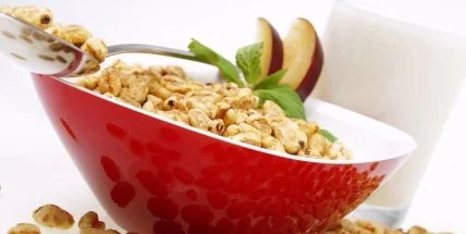 Пусть на завтрак будут натуральные продукты – сухофрукты, мед, зерновые хлопья, мюсли. Лучше всего сочетать их с молочными и кисломолочными продуктами, которые поспособствуют нормализации работы кишечника. Фрукты – прекрасное дополнение к завтраку. Завтрак быстрый, вкусный и полезный – примерно 100 гр. мюсли или зерновых хлопьев, залитых стаканом йогурта, кефира, или молока.
